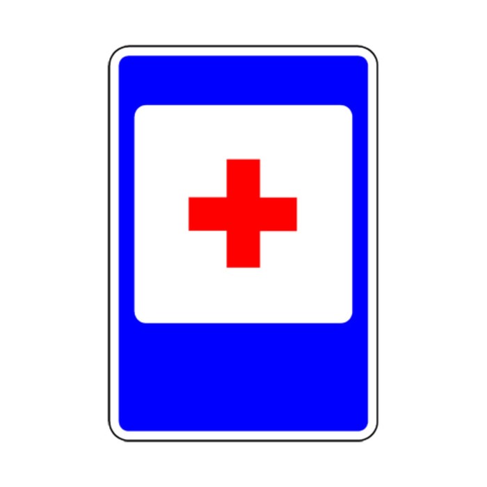 Медицинские дорожные знаки устанавливают на дорогах по ходу движения транспорта. Они информируют водителей и пассажиров о приближении к объекту медицинского назначения, в котором можно получить медицинскую помощь. Это может быть поликлиника, фельдшерский пункт, медсанчасть, иное медучреждение. На пунктах медпомощи всегда есть медикаменты, которые назначаются при травмах разного характера, обезболивающие, нормализующие давление препараты. В них обратившегося за помощью осматривает специалист с медицинским образованием и координирует дальнейшие действия посетителя для исключения осложнений в здоровье.
