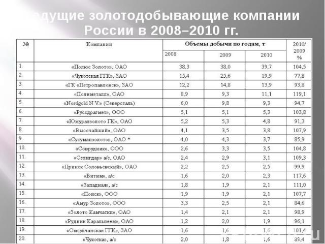 Крупнейшие добытчики золота