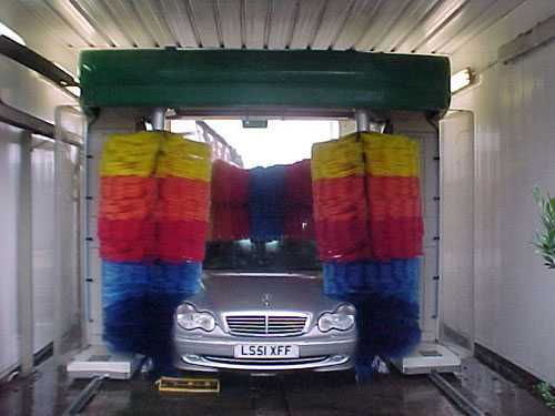 Мойка машин осуществляется импортными щетками, которые изготовляются из мягкого материала. Предварительное ополаскивание кузова размягчает слой грязи и подготавливает его к последующему нанесению моющего средства и обработке щетками. К тому моменту, когда они начинают снимать с кузова грязь, она превращается в мокрую смесь, которая не в состоянии оцарапать покрытие. Многочисленные ворсинки щеток при быстром вращении собирают эту массу, не придавливая ее к кузову. Со временем эти волокна изнашиваются, и щетки следует заменить новыми.