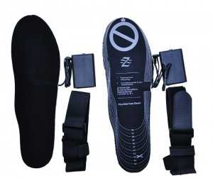 Эта разработка подходит для различных видов обуви и прекрасно держит тепло. Внутри стельки расположена карбоновая пластина, а нагрев происходит от источника инфракрасного излучения. Нагревательный элемент находится в верхней части стельки. Пульт управления можно закрепить на голени или на верхней стороне обуви. Работает устройство от батареек, а заряд контролируется на блоке управления.