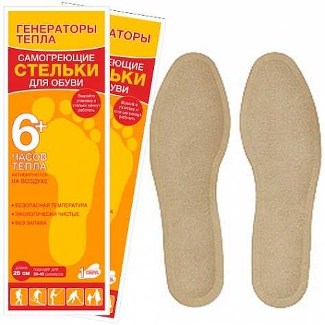 - Принцип работы изделия, основанная на химической реакции. Как правило, они одноразовые и это основной их недостаток. Перед применением, со стелек снимается верхний слой, что и приводит к началу химической реакции. Срок действия такой стельки – не больше 4-х часов. Достоинство – это простота устройства, низкая цена, а значит – доступность.