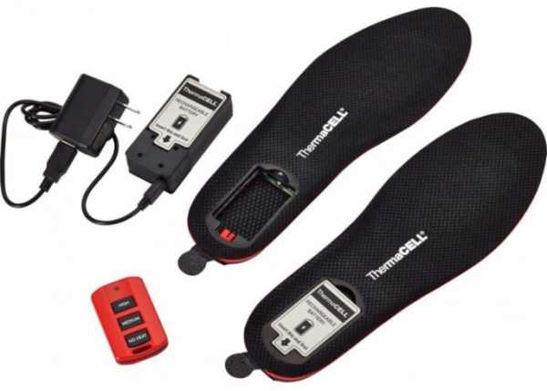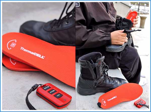 С изделиями этой компании комфортный микроклимат в ботинках вам обеспечен. Ваши мысли уже не заняты проблемой обогрева ног при ходьбе. Несмотря на использование электричества, проводов в данной модели нет. Устройство ThermaCELL работает следующим образом: оно вставляется в зарядное устройство на 3 часа (при первой зарядке — на 6 часов), затем помещается в сапог или ботинок. Стелька с подогревом работает на литий-ионовом аккумуляторе, которого хватает на 5 часов. Общий ресурс составляет 3000 часов на 500 подзарядок. Подогрев включается или выключается при помощи пульта, который удобно размещается в кармане. Имеется три режима подогрева и 5 возможностей подстройки размеров.