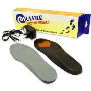 Еще одна фирма производит качественные подогревающие стельки, которые отлично сохраняют тепло ваших ног во время катания на лыжах или длительной прогулки. Современные модели DiClime лишены недостатков. Они оснащаются встроенным аккумулятором, который, благодаря своей форме, незаметно крепится к щиколотке и не мешает при ходьбе. Работает они при помощи инфракрасных нагревательных элементов, которые благотворно действуют на организм человека о поддерживает естественный теплообмен. Специальный датчик позволяет экономить зарядку аккумулятора.