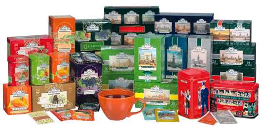 Якобы английский чай, а на самом деле чай от компании «Май» среднего ценового сегмента и качества. Представлен богатой коллекцией черных и зеленых чаев в пакетированной форме с ароматизаторами, добавками и десертными вкусами.