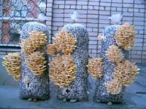 Мешки, наполненные мицелием, расставляются вертикально, приблизительно в полуметре друг от друга, чтобы дать возможность разрастанию вешенок. Проще будет, если мешки формировать так, чтобы вам потом не приносило неудобств расположение вашей грибной «грядки». Вы должны свободно перемещаться между мешками, для простоты полива и сбора урожая. Можно мешки оформить ярусами, если помещение достаточно высокое, что увеличит площадь возделывания. Оптимальными показателями температуры в помещении считаются 19-25 градусов, когда мицелий начнет развиваться, содержимое мешков побелеет, так как споры будут проникать все глубже в субстрат. Полив мешков с мицелием производится раз в сутки. Если вы будете соблюдать все требования при возделывании грибниц, то уже через три недели, ваша грибная грядка порадует вас первыми плодами.