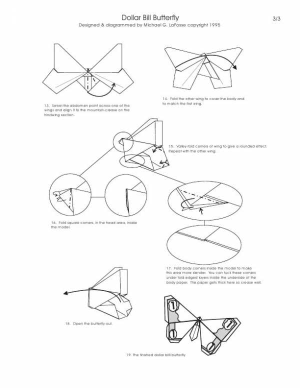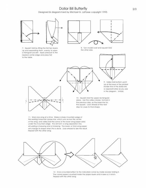 В качестве эксклюзива, я нашла оригинальную авторскую схему сложения этой бабочки. Пусть вас не смущает, что она на английском языке, ведь все манипуляции с бумагой изображены самым наглядным образом: