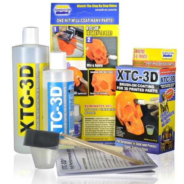 Пару слов о подготовке моделей, напечатанных на 3D-принтере. Компания Smooth-On обратила своё внимание на эту технологию и выпустила специальный лак под названием XTC-3D. Он прекрасно сглаживает характерные для напечатанных моделей огрехи, видимые слои, которые обязательно перейдут на силиконовую форму, и придает поверхности гладкость и глянцевый вид.