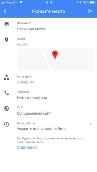 - Добавьте дополнительные сведения — режим работы, контакты, адрес сайта и т.д., и нажмите «Сохранить» (для iOS), либо на галочку в верхней части экрана (для Android).