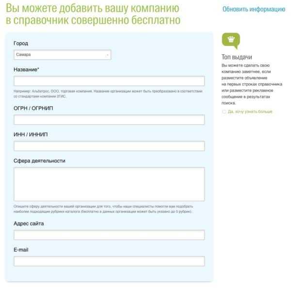 - редактировать название организации и подбирать рубрики на свое усмотрение;