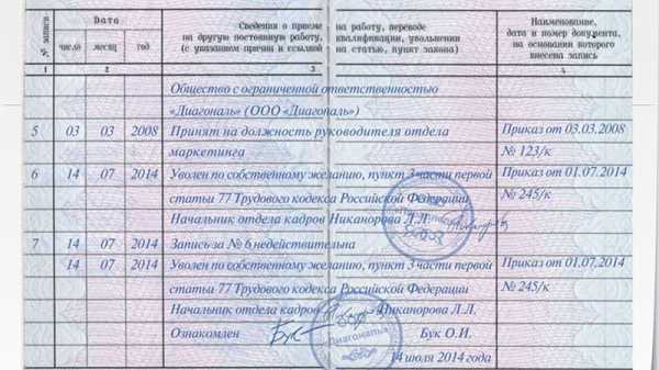 Запись в трудовой книжке о приеме на работу 2017 образец