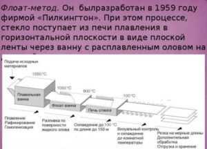 Флоат-метод заключается в том, что вязкая стеклянная масса после печи принимает горизонтальное положение. На плоском оборудовании она подается во флоат-ванную с расплавленным оловом и газовоздушной атмосферой. Материал плывет по поверхности, обретает форму и вбирает в себя микроскопические частицы олова. После чего стекломасса охлаждается и подвергается отжигу.