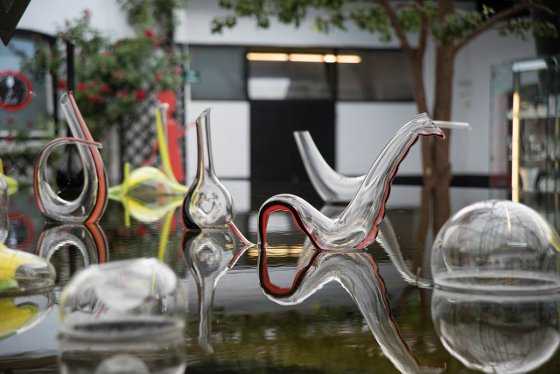 Художественные стеклянные изделия делают все из той же стеклянной массы. На производстве таких изделий стоит все та же печь, но только температура для изготовления немного ниже промышленных, около 1200 градусов. Непосредственно само изделие делают стеклодувы. Стеклодувы как ювелиры для стекла, они могут работать как в одиночку, так и парами или даже больше.