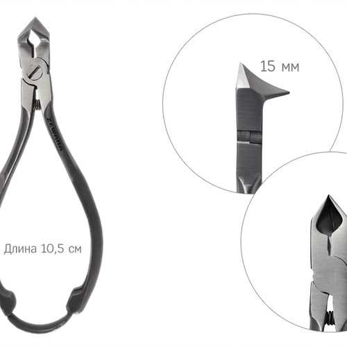 Проф. кусачки выпускаются разных размеров и формы лезвий, одни мастера предпочитают широкие лезвия с углублением, друге утонченные коротенькие: