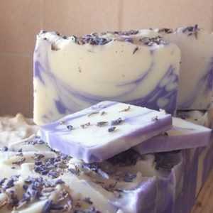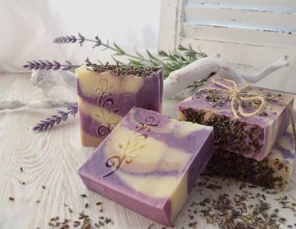 Несложно сделать лавандовое мыло своими руками, используя готовую основу (100 г), которую посредством водяной бани расплавляют после измельчения и вливают оливковое масло (5 г). Всыпают сухую лаванду (чайную ложку цветков) и дополнительно вводят эфирное лавандовое масло (12-15 капель). После тщательного перемешивания разливают по силиконовым формам.