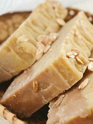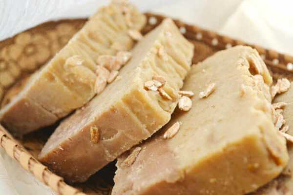 Действующее на кожу омолаживающим образом овсяное мыло можно изготавливать быстро, если расплавить на плите натертый брусок детского мыла и всыпать хлопья овсянки, ориентируясь на собственные предпочтения. После перемешивания можно разливать по формам.