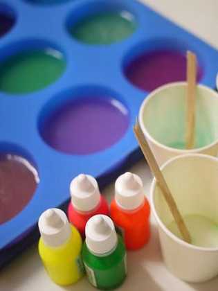 Жидкие красители уже разбавлены, они очень удобны в использовании. Добавлять 1–10 капель на 100 г мыла. Можно смешивать их между собой, так что достаточно купить красители основных цветов — красный, жёлтый и синий.