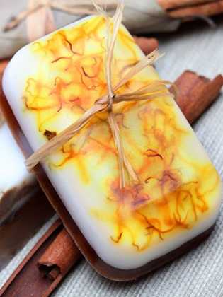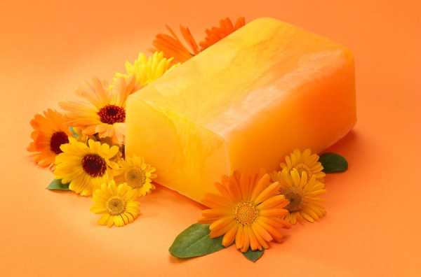 Можно для изготовления мыла дома с интересным внешним дизайном воспользоваться предлагаемым ниже алгоритмом. На предварительном этапе настаивают 15 минут щепотку лепестков календулы, всыпанных в столовую ложку масла, выжатого из зародышей пшеницы. Вливают получившуюся маслянистую жидкость оранжевого цвета в расплавленную мыльную основу (100 г). Сняв с огня и вмешав масло ромашки, разливают выполненное полезное мыло своими руками, сбрызнув спиртом. Им моют чувствительную кожу, устраняя шелушение и сухость.