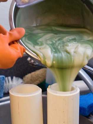Формы готовим заранее и промазываем любым маслом, переливаем и оставляем сушиться в теплом помещении.