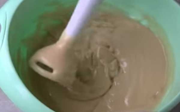 - Подогрейте воду, добавьте ее к смеси, взбивая в кремообразную массу.