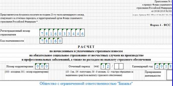 Образец заполнения формы 4-ФСС в 2018 году