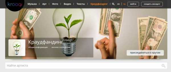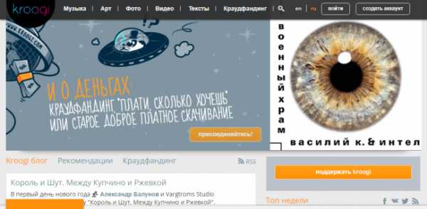 Kroogi (сайт kroogi.com) – краудфандинговый сайт в России для творческих людей (музыкантов, писателей, художников, фотографов).
