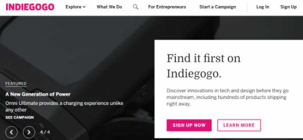 Еще одной популярной площадкой является indiegogo.com. Этот ресурс уже больше ориентирован на финансирование бизнес-проектов. Плюсом ресурса является небольшая комиссия, которая составляет от 4 до 9%.