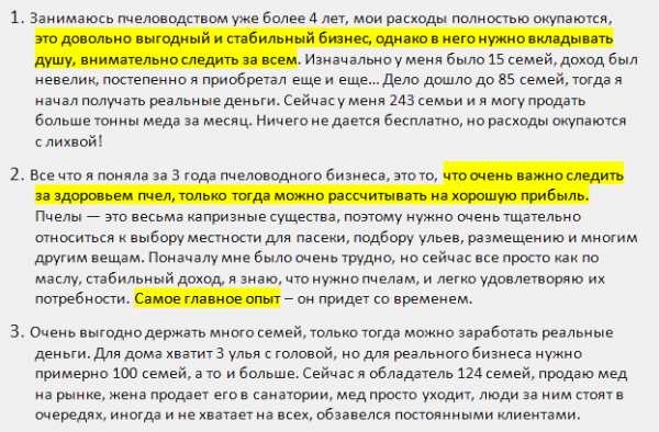 Таким образом, пчеловодство является весьма рентабельным видом бизнеса, доступным любому желающему. Однако несомненно, кроме вложения капитала данный вид деятельности требует затрат сил и времени.