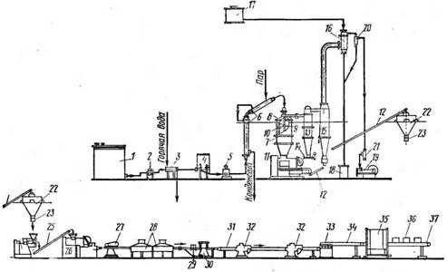 Рис. 29. Аппаратурно-технологическая схема обработки твердого хозяйственного мыла на линиях системы ВСУ. |