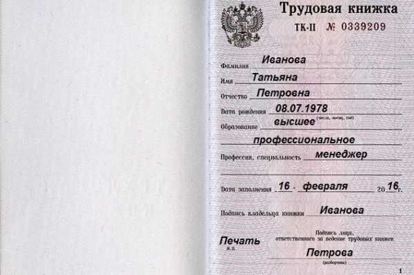 Пример дополнения записей в трудовой книжке об образовании, профессии, специальности