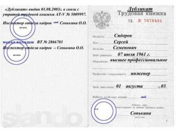 Пример оформления дубликата трудовой книжки по последнему месту работы