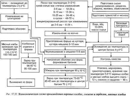 Технологическая схема производства вареных колбас, сосисок и сарделек, мясных хлебов