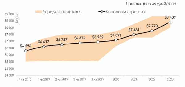 Исходя из данных условий, мы считаем, что мировой рынок меди будет двигаться в сторону дефицита. Это приведет к росту средних котировок меди до уровня в $7 000 за тонну в 2019 году и планомерному росту в последующих периодах.