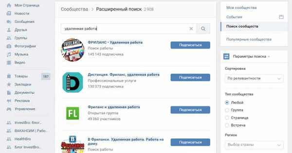 Введите в поисковой строке на Вашей странице словосочетание «удаленная работа» и сами увидите, сколько сообществ помогают с поисками. Вы видите работодателя, а он — Вас, и прямой контакт помогает легче найти взаимопонимание.