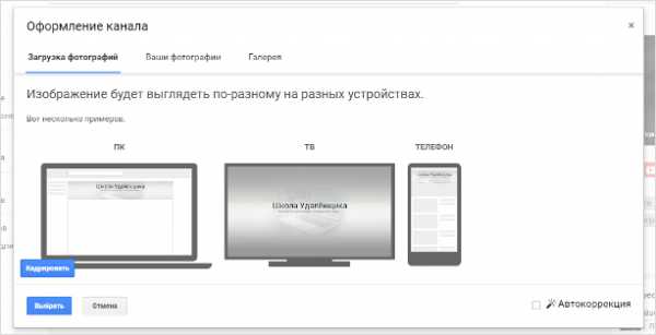 Кадрируем картинку - Сохранить изменения. Готово, шапка установлена на вашем Ютуб-канале.