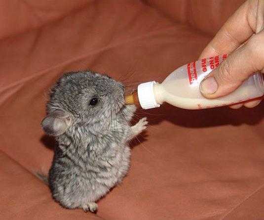 С первых дней жизни малыши нуждаются в молоке матери, но иногда молоко не сразу появляется и необходимо присматриваться, едят ли щенята. Если детенышей в помете много, они могут недополучать еду. Если мать от них убегает, огрызается, а они бегают за ней, дерутся или сидят, опустив хвостики, вероятно, они голодны. В этих случаях малышей следуем подкармливать молоком для детей. Кормить лучше всего из стерильного шприца без иголки на 2 мл, из стеклянной пипетки не следует давать молоко, так как детеныши уже имеют острые зубки они могут отгрызть стекло и травмироваться. Шиншиллята поначалу могут не есть из шприца, убегать и отворачиваться, но это лишь до тех пор, пока они не распробовали предложенную еду, чтобы они поняли, что это вкусно можно чаще их угощать молоком – через полчаса, час. Позже кормят щенят каждые два часа, постепенно увеличивая интервал до шести. Кормить следует очень осторожно, чтобы маленький не захлебнулся. Необходимо внимательно следить за стулом малышей, очень опасным для них является вздутие, в этом случае дают симетикон, эспумизан.