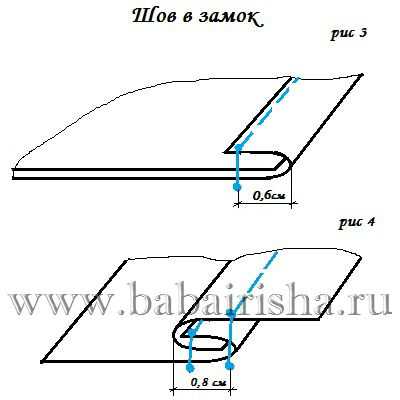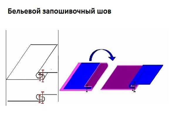 Следующий шов носит название запошивочный или в замок. Применяется в постельном белье в тех случаях, когда необходимо соединить две детали кроя. Например, когда при недостаточной ширине ткани приходится шить простынь и пододеяльник с надставками.