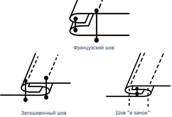 Эти швы трудоемки, и их применяют в основном в тех случаях, когда нет краеобметочной машины, если хотят сшить качественные изделия, и в домашних условиях.