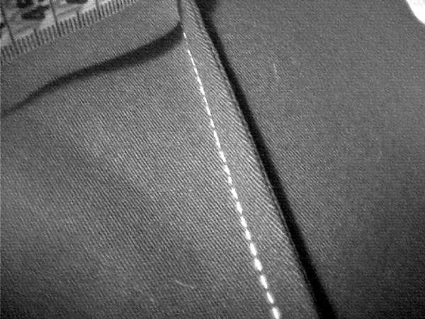 - На расстоянии 1–2 мм от внутреннего края подгиба прокладывается строчка.