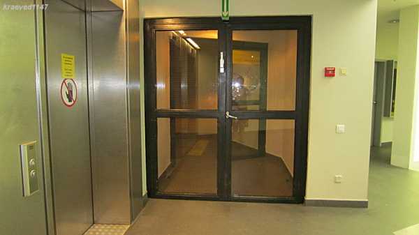 На фото слева – железная дверь лифта и стеклянная дверь, ведущая на лестницу. Спускаемся на уровень ниже.