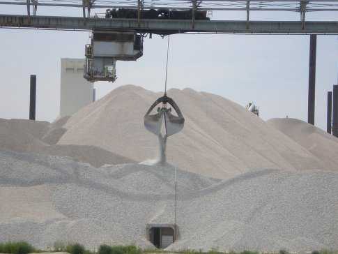 Открытые клинкерные склады оборудованы мостовыми кранами с грейферными захватами, с помощью которых клинкер и минеральные добавки подают в расходные бункера цементных мельниц.