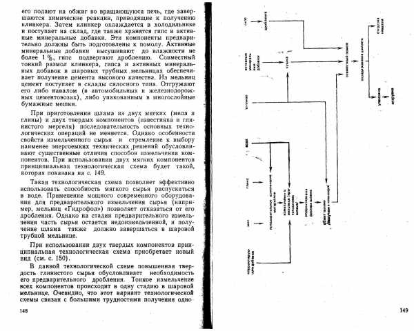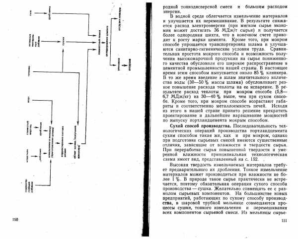 Необходимость экономии расхода топлива вынуждает перерабатывать по сухому способу материалы со все более высокой влажностью. Технологическая схема производства портландцемента из такого сырья выглядит следующим образом (см. схему 5).