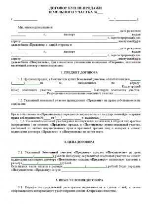 Скачать договор купли-продажи земельного участка