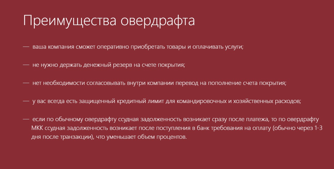 Овердафт для юридических лиц.